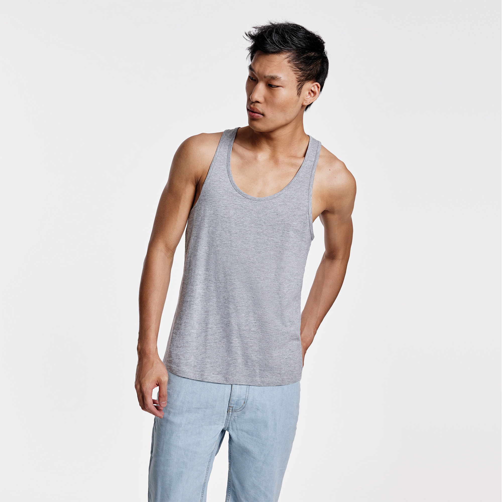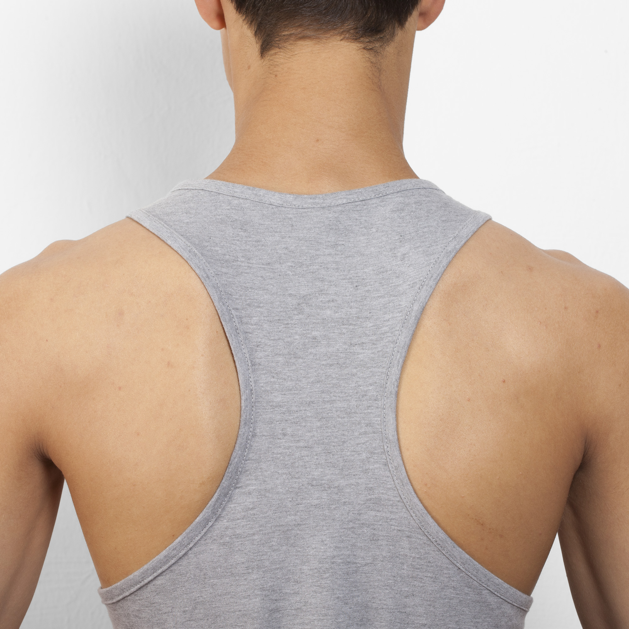Camiseta de tirantes con sisas bajas. Espalda estilo nadadora y bajo redondeado.