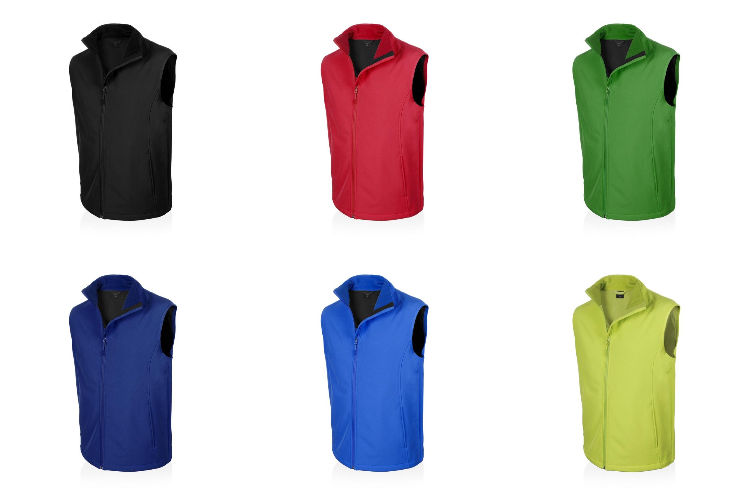 Chaleco impermeable y transpirable en combinación de materiales soft shell y elastano. En variada gama de vivos colores, con cierre de cremallera y bolsillos frontales. Disponible en tallas S, M, L, XL, XXL.